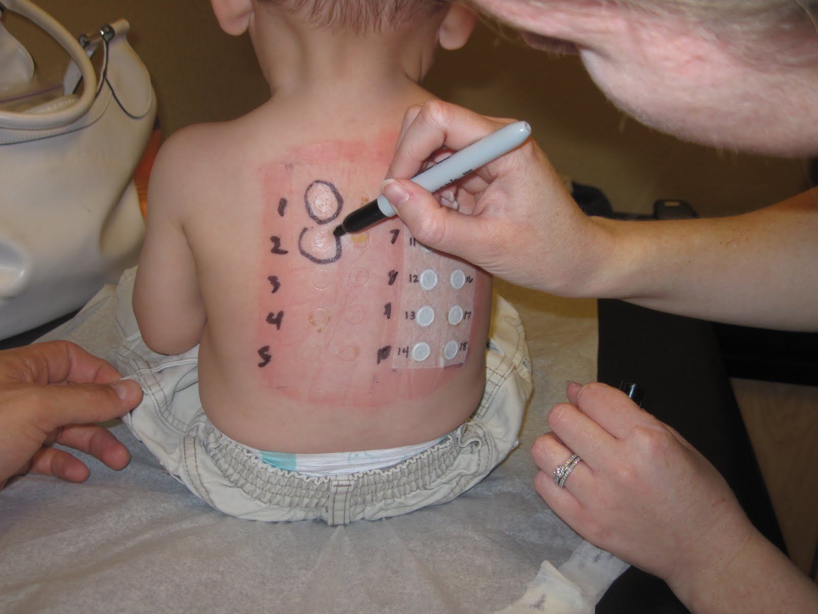 The substances to be tested are incorporated into adhesive patches and are applied to the skin. They are kept in place for 48 hours and are then removed. The results are read after 2 hours. Depending on the severity of the reaction seen the results are graded from 0 to 4+.