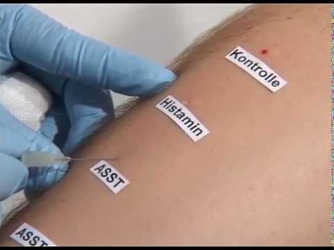 Skin testing is most commonly performed on the forearm. Small drops of negative control, positive control and allergic extracts are placed on the skin. The skin is then pricked with a small lancet without drawing blood. The reaction is read after 15-30 min and the size of the wheal and flare compared to that of the positive and negative controls.